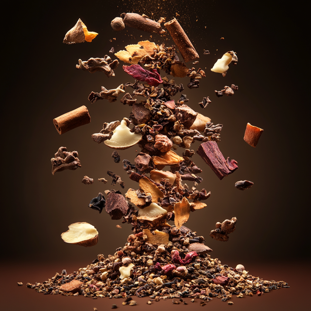 Ingredients: Rhodiola Root, Ashwagandha Root, Dandelion Root, Cinnamon, Chaga Mushroom, Cascara Shells, Cacao Nibs, Ginger Root, Cardamon Seeds, Clove Buds, Slippery Elm, Maca