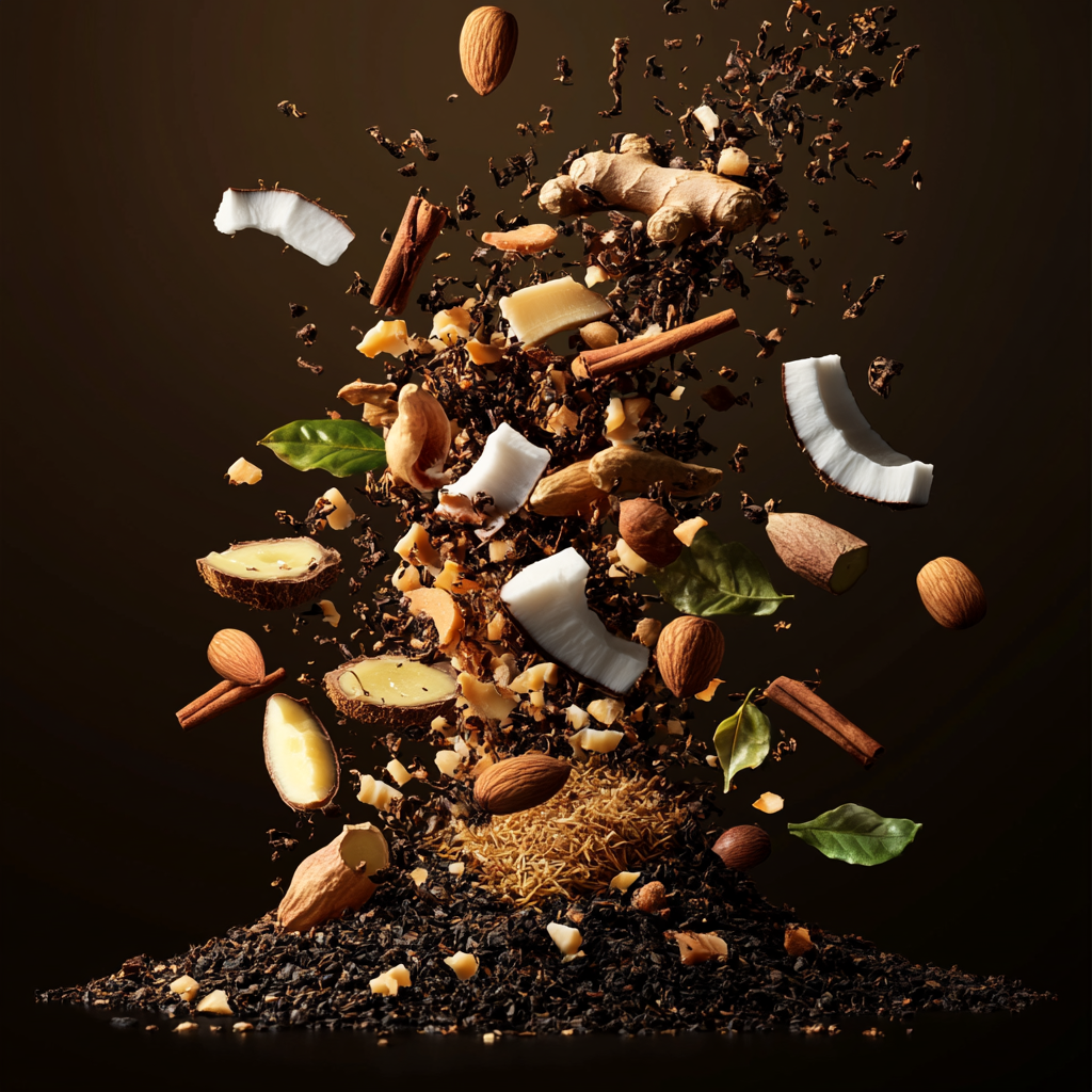 Ingredients: Black Tea, Cinnamon, Ginger, Coconut, Lemongrass, Cardamom, Ginger Varietal, Natural Coconut Flavor